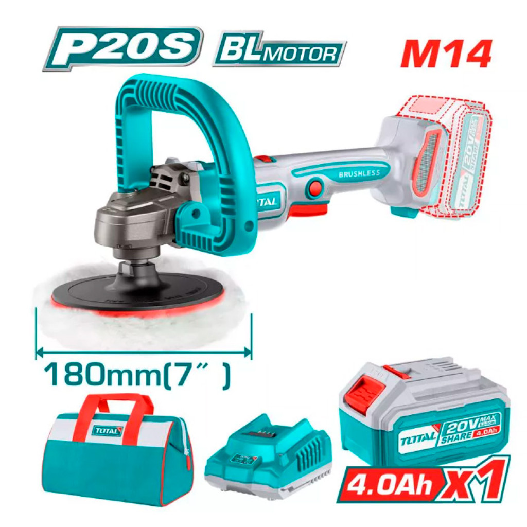Փայլեցնող մեքենա մարտկոցային (1 մարտկոց, 1 լիցքավորիչ) 20Վ 180մմ TOTAL TAPLI20181 (ԿՈԴ 15925)