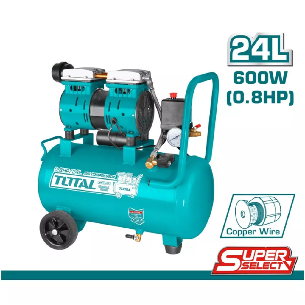 Օդի Կոմպրեսոր Անձայն Առանց Յուղի 24 Լ / 600 Վտ TOTAL TCS1075248 (ԿՈԴ 13984)