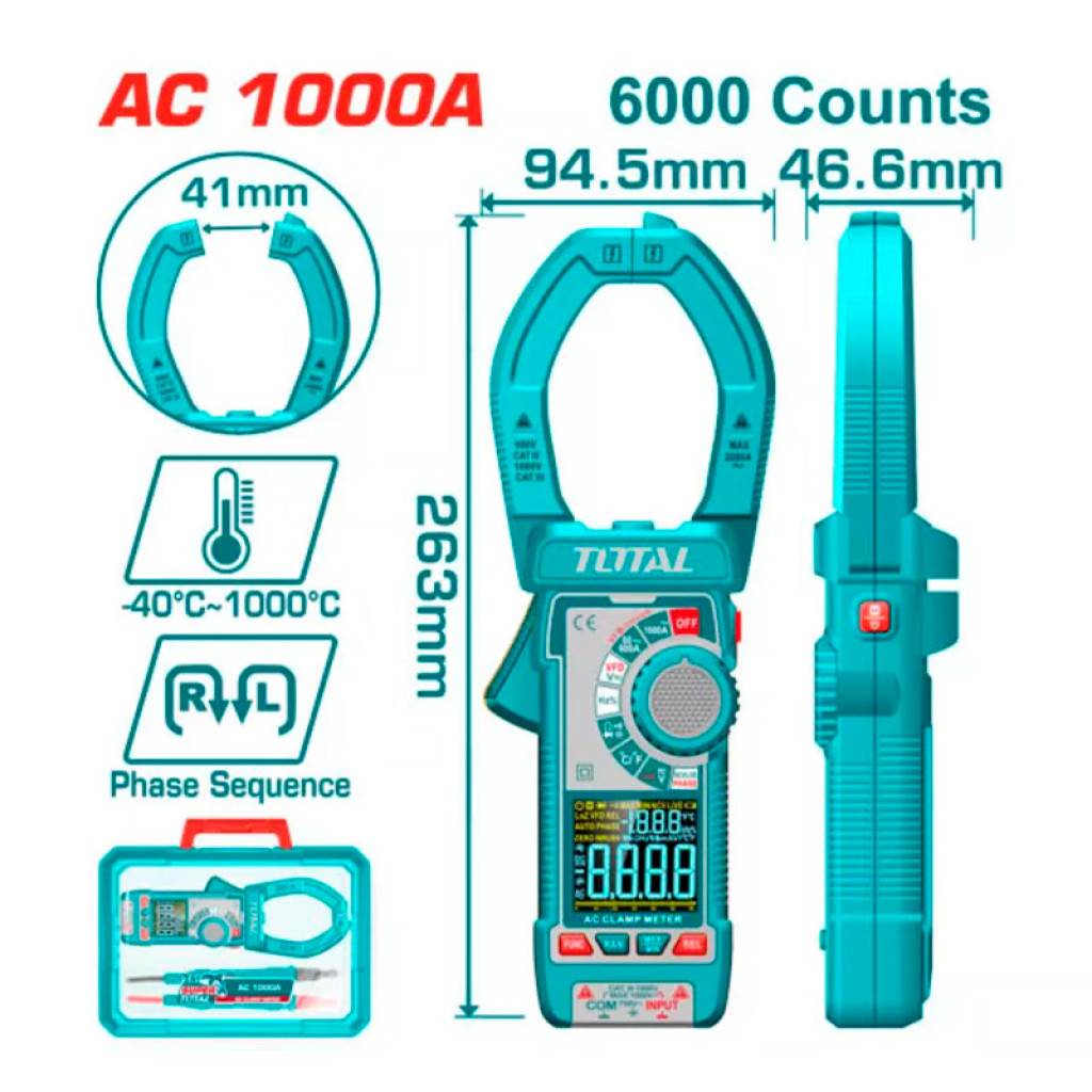 Թվային հոսաքաչափիչ աքցան փոփոխական հոսանքի 1000Ա TOTAL TMT7610001 (ԿՈԴ 16290)