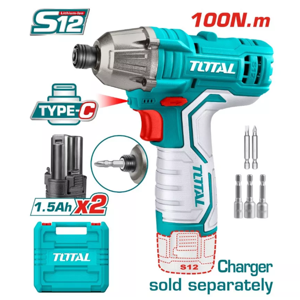Հարվածային պտուտակադարձիչ մարտկոցային 12Վ 100Նմ (2 մարտկոցով) TOTAL TIRLI12015 (ԿՈԴ 13865)