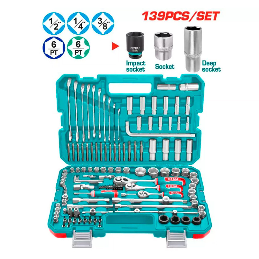Համակցված գործիքների և աքսեսուարների հավաքածու (139 հատ) TOTAL THKTHP21396 (ԿՈԴ 16119)