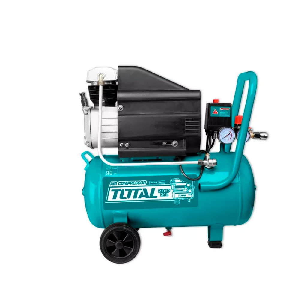Օդի կոմպրեսոր TOTAL TC120246 - ը ունի բարձր աշխատունակություն էլեկտրական շարժիչի շնորհիվ : Ամուր պատյանը հարմար է օգտագործման ցանկացած պայմաններում : Անիվների և տրանսպորտային բռնակի առկայությունն ապահովում է շարժունակություն , որը հարմար է խոշոր շինհրապարակների կամ արդյունաբերական տարածքների համար : Ներկառուցված ճնշման չափիչը հեշտացնում է օդի սեղման գործակիցը և նվազեցնում միացված գործիքի կոտրման հավանականությունը :