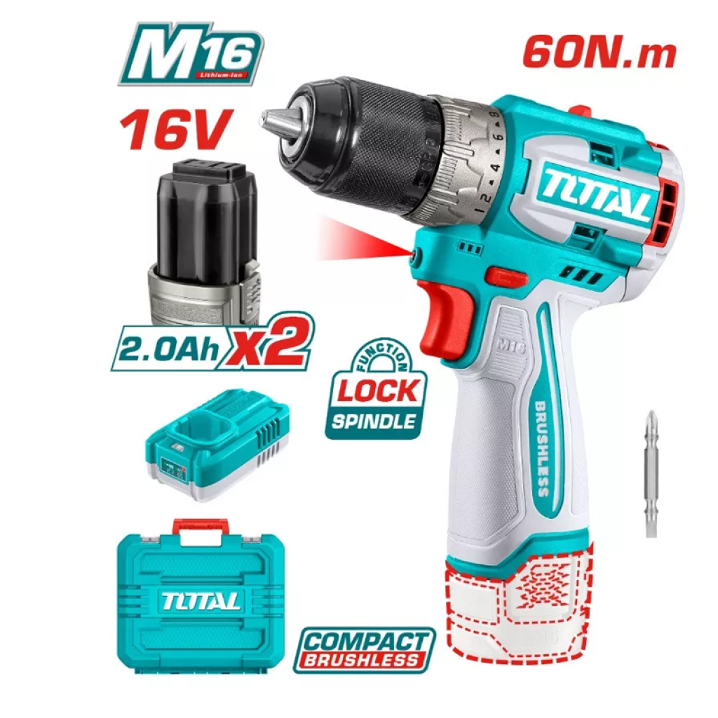 Պտուտակադարձիչ մարտկոցային 16Վ 60Նմ (2 մարտկոցով, լիցքավորիչով) TOTAL TDLI16682 (ԿՈԴ 13920)