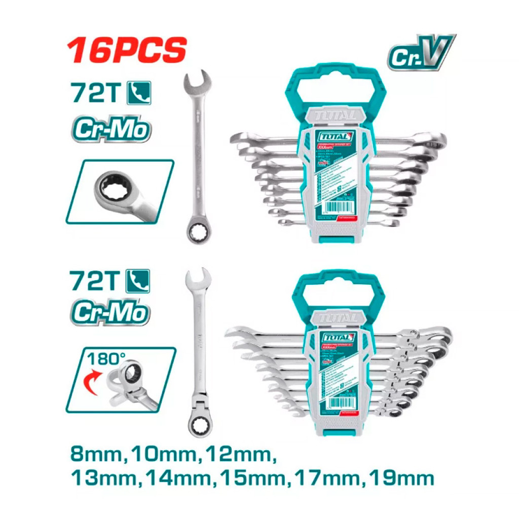 Բանալիների հավաքածու 16 հատ 8-19մմ TOTAL THT103RK166 (ԿՈԴ 16063)