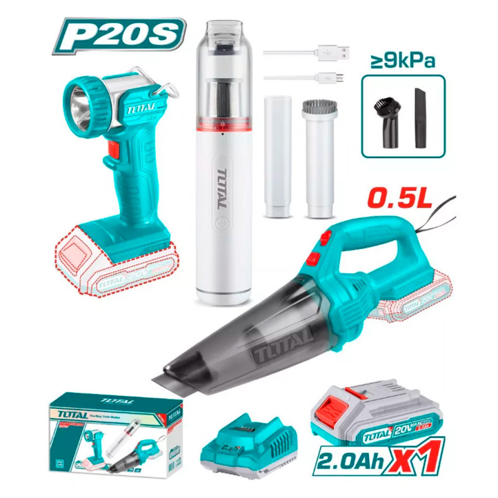 Կոմբո հավաքածու․ 2հ մարտկոցային փոշեկուլ (TVLI1106, TVLI201261), աշխատանքային լապտեր (TWLI2038) TOTAL TOSLI20668 (ԿՈԴ 15661)