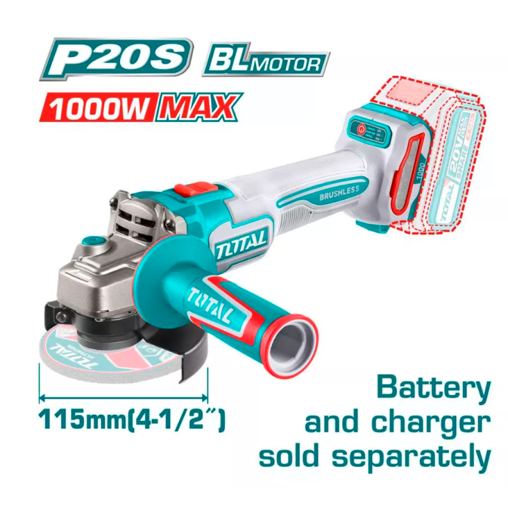Անկյունային հղկող մեքենա մարտկոցային 20Վ 115մմ TOTAL TAGLI27153 (ԿՈԴ 15504)