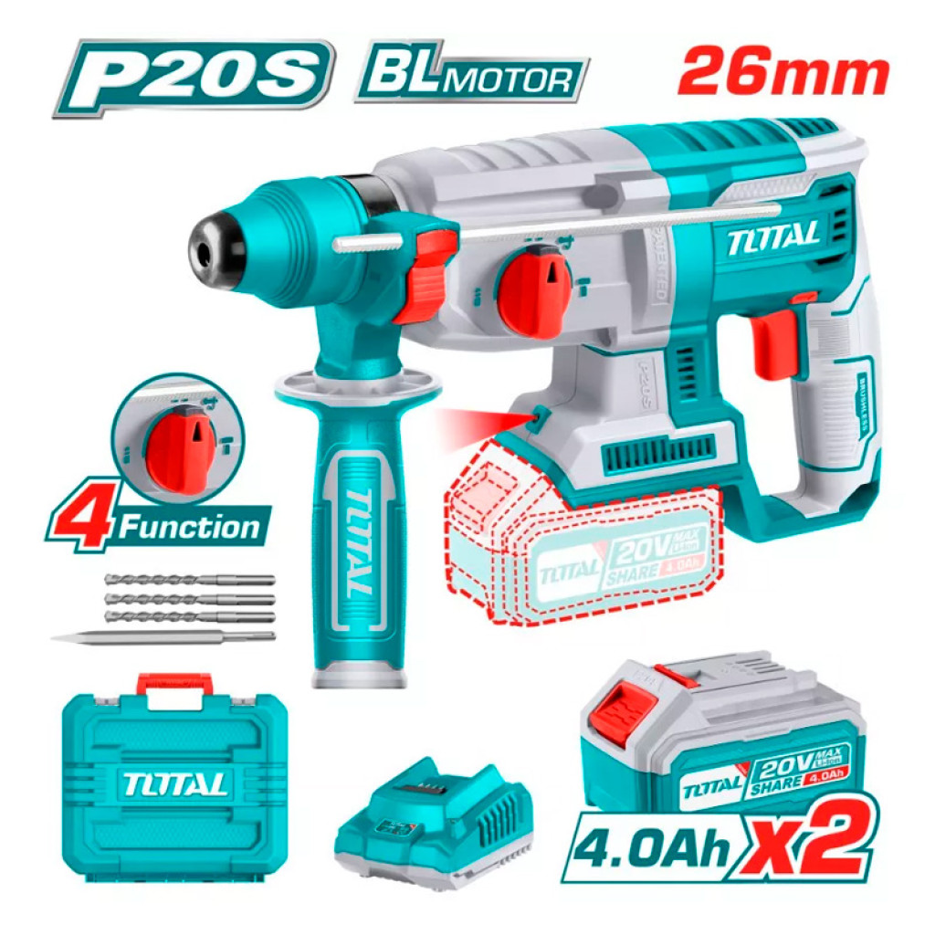 Հորատիչ մարտկոցային 20Վ 2Ջ SDS Plus (2 մարտկոցով, լիցքավորիչով) TOTAL TRHLI202287 (ԿՈԴ 15758)