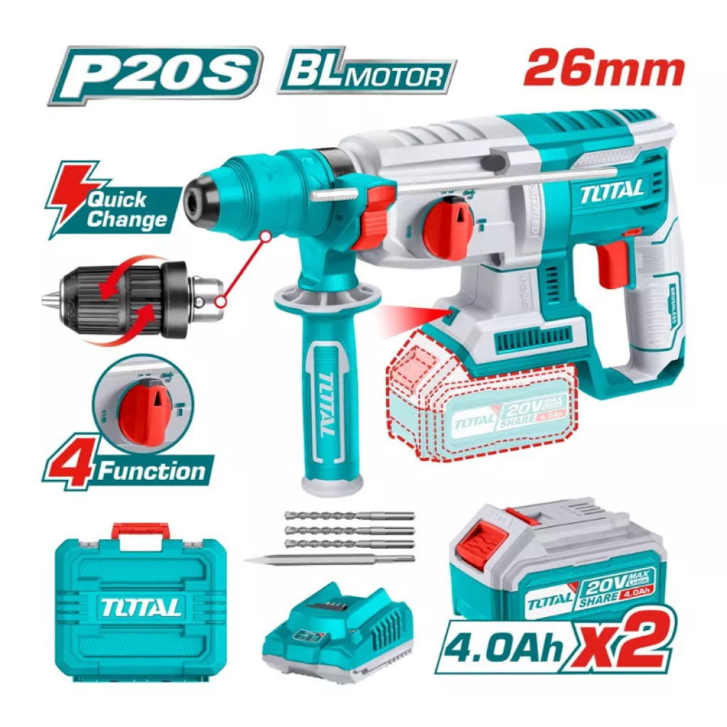 Հորատիչ մարտկոցային 20Վ 2Ջ SDS Plus (2 մարտկոցով, լիցքավորիչով) TOTAL TRHLI202289 (ԿՈԴ 13833)