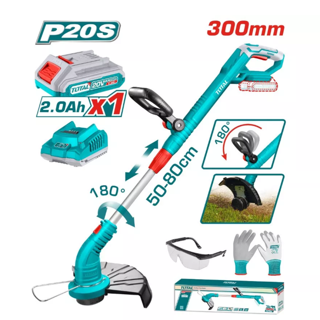 Խոտհնձիչ մարտկոցային 20Վ 300մմ (մարտկոցով, լիցքավորիչով, ձեռնոցներով, ակնոցով) TOTAL TGTLI20301 (ԿՈԴ 13982)