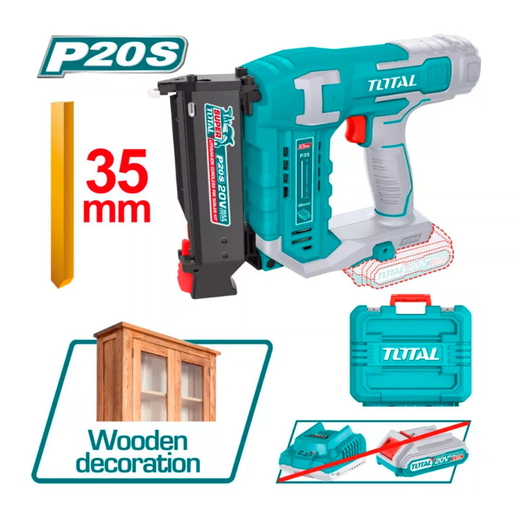 Մարտկոցը և լիցքավորիչը ներառված չէ։Մեխ կրակող գործիք մարտկոցային 20Վ 35մմ TOTAL TCBNLI3603 (ԿՈԴ 15852)
