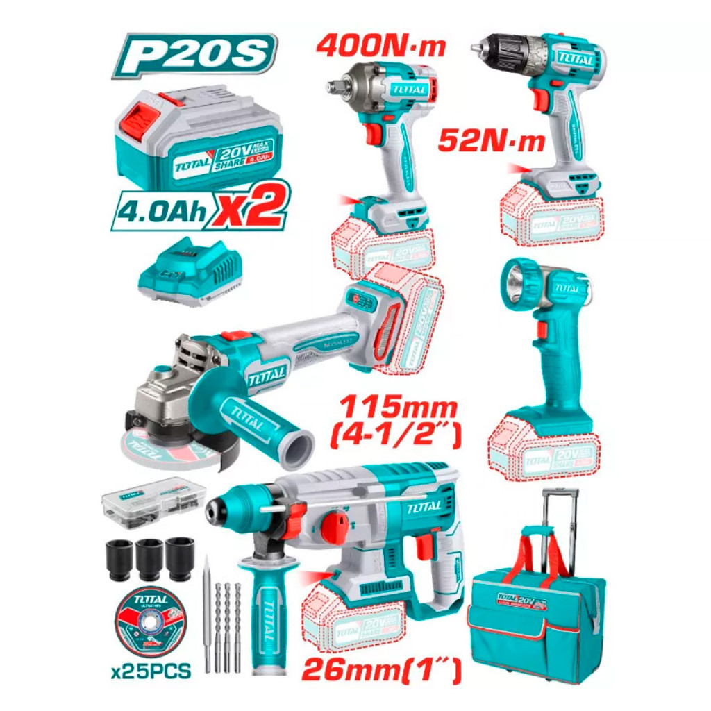 Մարտկոցային 20Վ գործիքների (5 հատ) հավաքածու TOTAL TCKLI2058 (ԿՈԴ 15662)