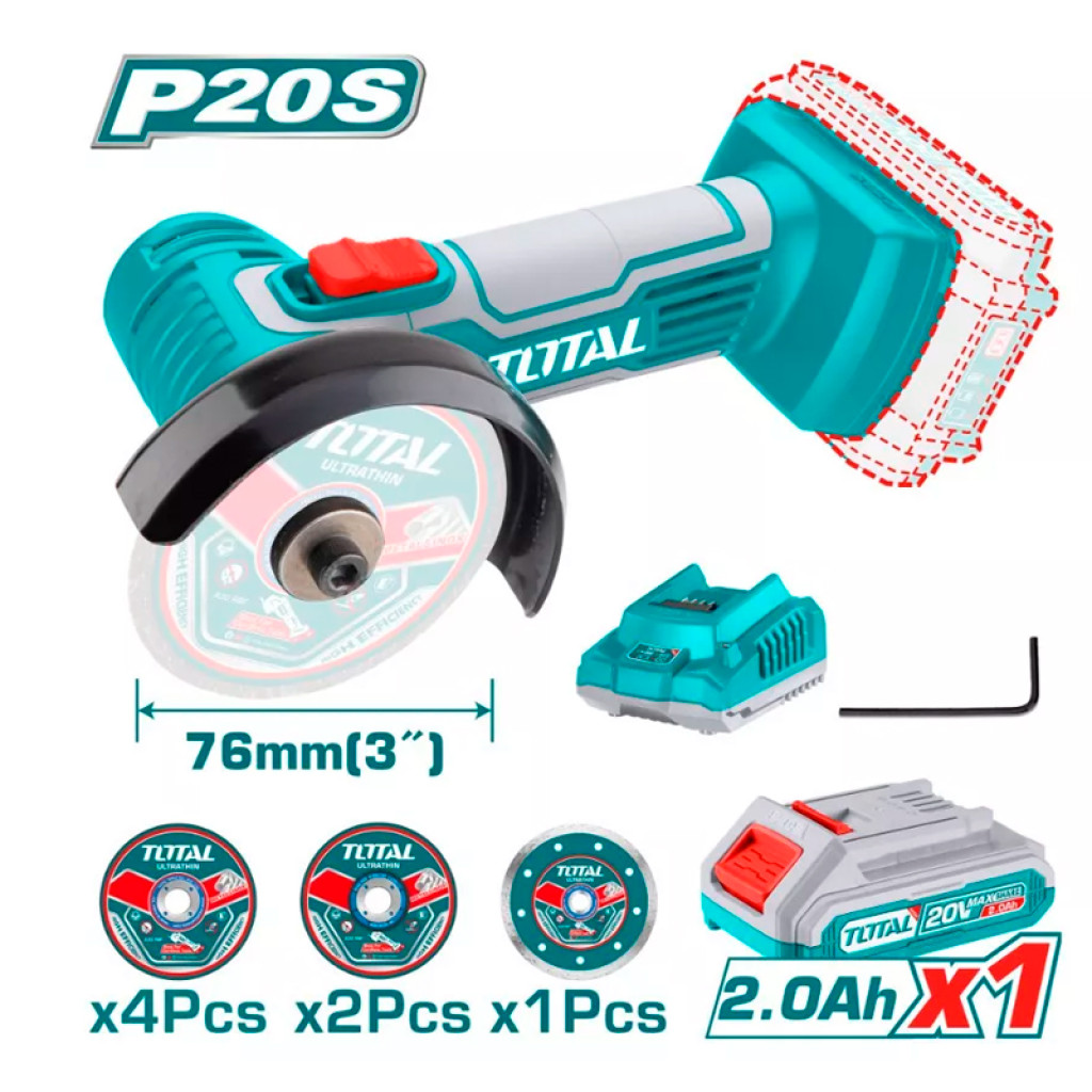 Մինի կտրող գործիք մարտկոցային 20Վ 76մմ (7 սկավառակ, մարտկոց, լիցքավորիչով) TOTAL TAGLI76017 (ԿՈԴ 15516)