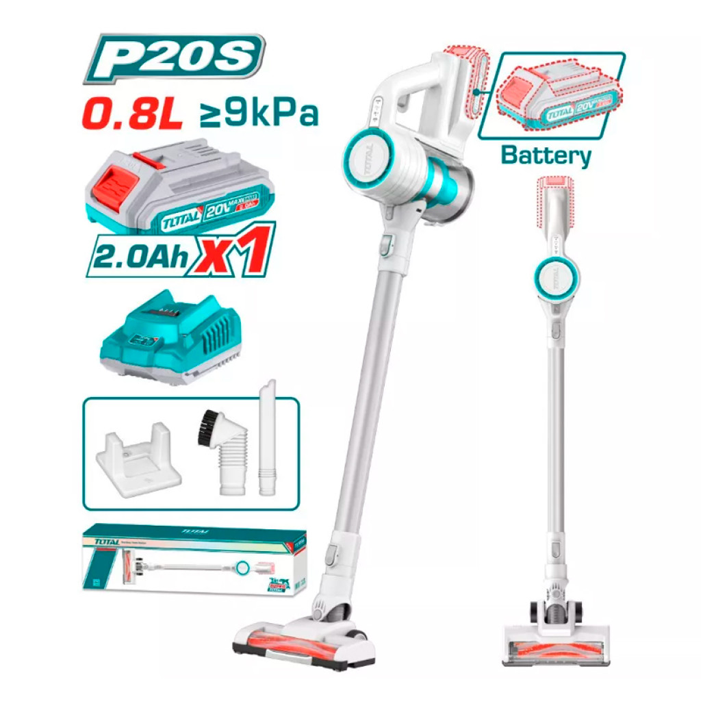 Փոշեկուլ մարտկոցային 20Վ 9կՊա 0․8լ (մարտկոցով, լիցքավորիչով) TOTAL TVLI2006 (ԿՈԴ 15939)