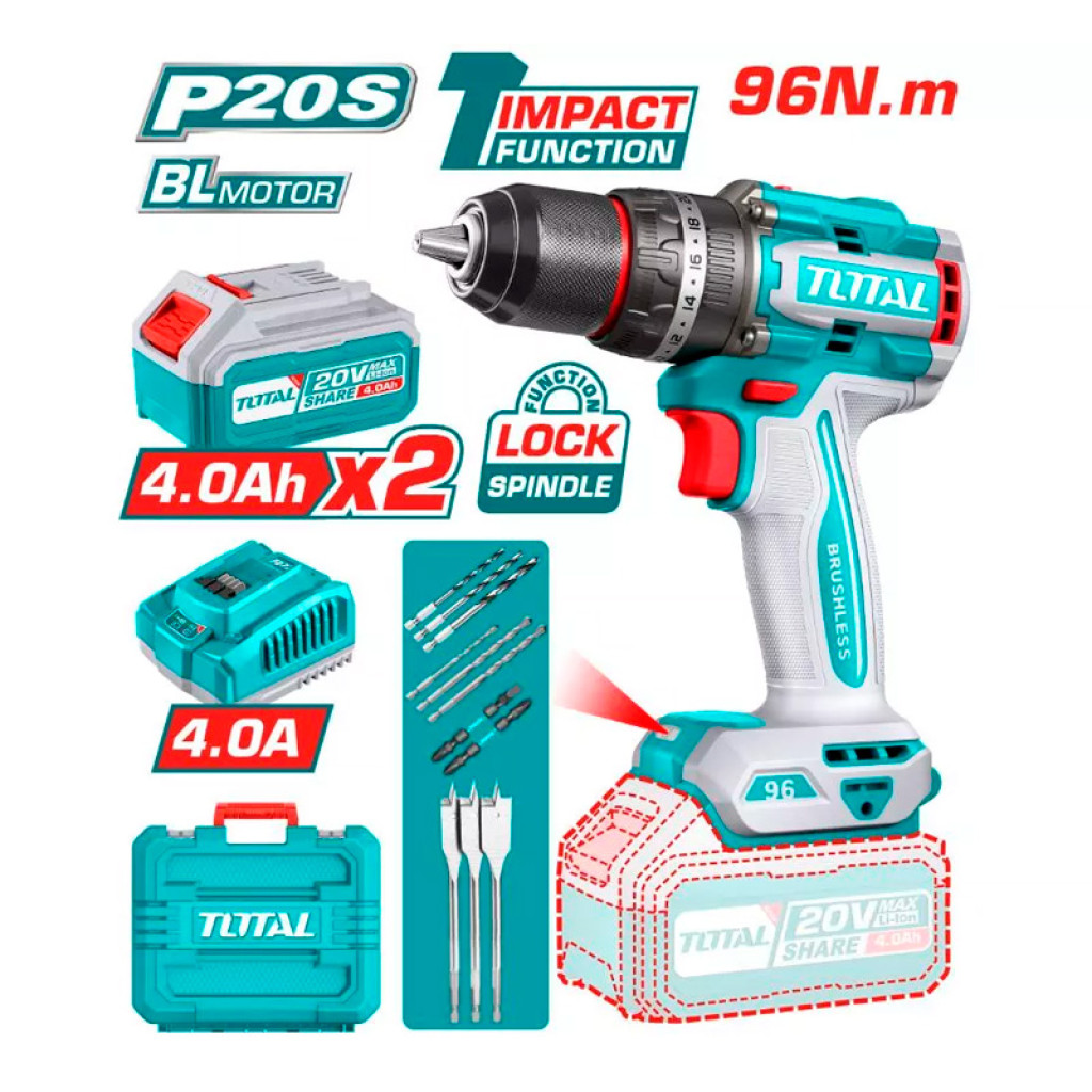 Հարվածային պտուտակադարձիչ մարտկոցային 20Վ 96Նմ TOTAL TIDLI20968 (ԿՈԴ 15773)