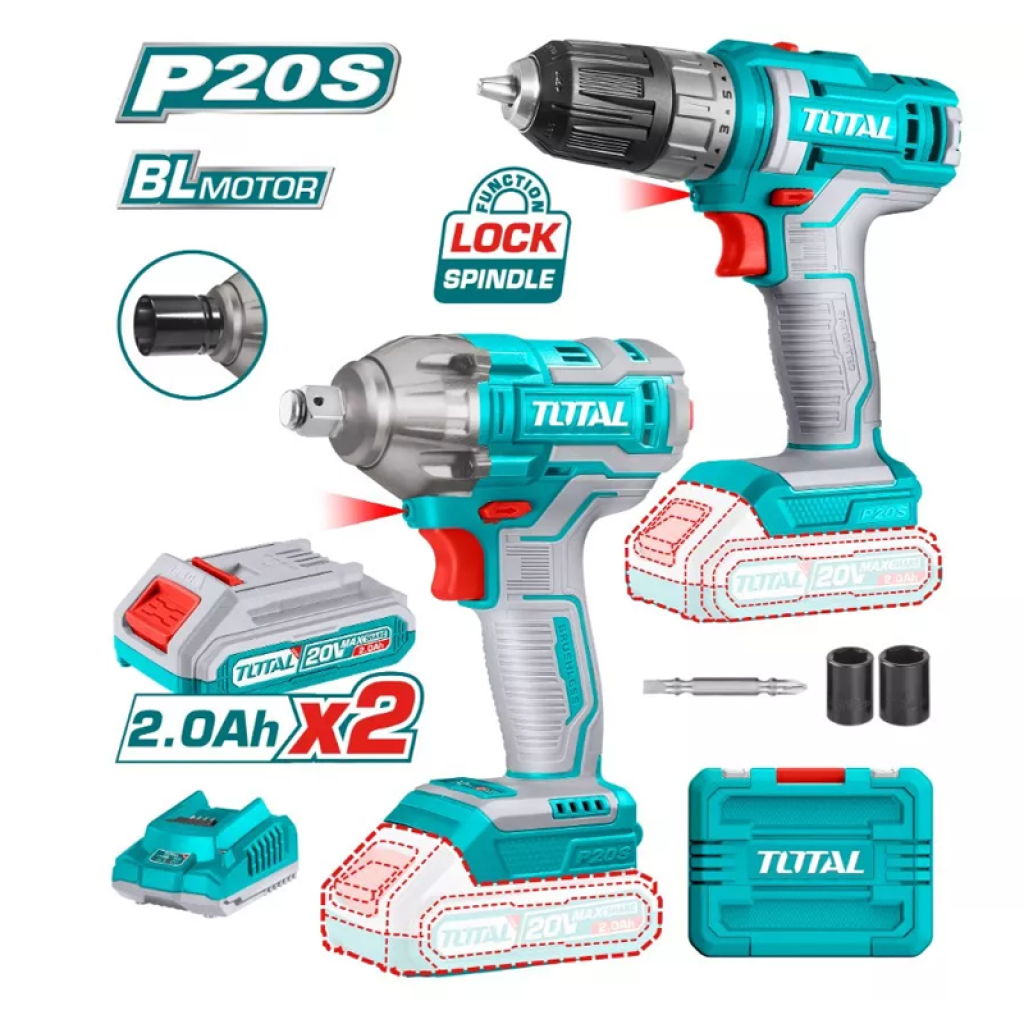Կոմբո հավաքածու մարտկոցային 20Վ․ պտուտակադարձիչ (TDLI200528), հարվածային գայկավյորտ (TIWLI2038) TOTAL TOSLI230702 (ԿՈԴ 13912)