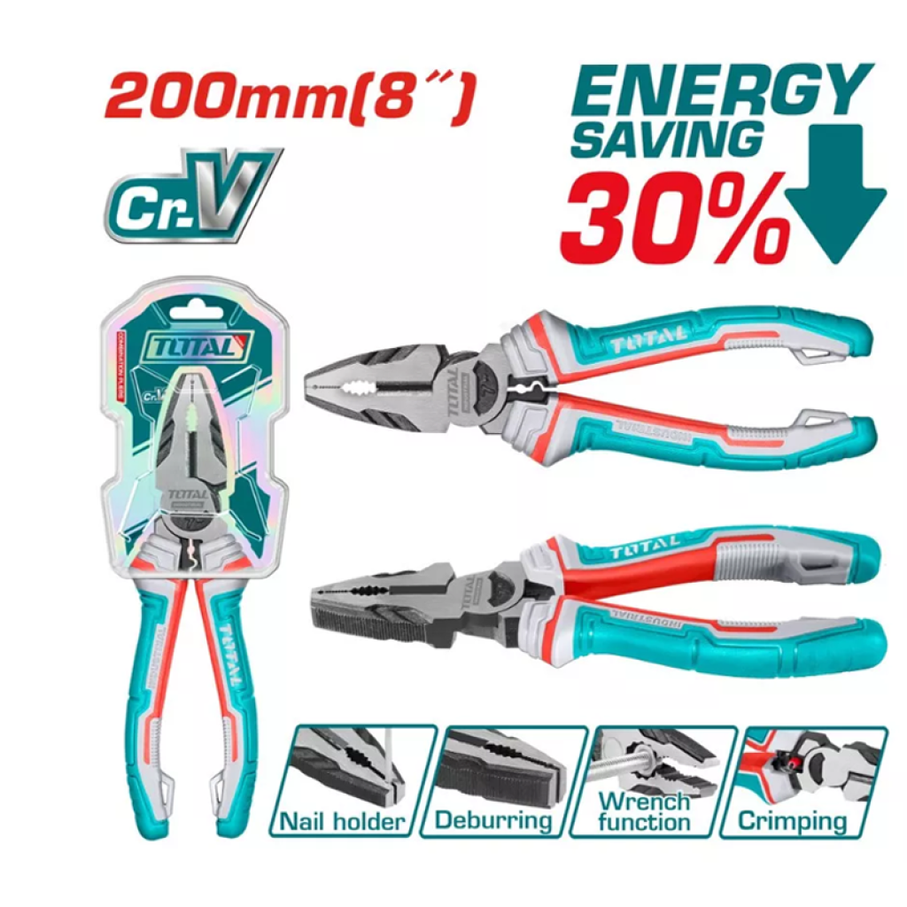 Համակցված տափակաբերան աքցան 200 մմ TOTAL THT210806 - ը ձեռքի գործիք է փականագործի աշխատանքի համար : Քրոմապատ վանադիումի պողպատե աշխատանքային մակերեսը ապահովվում է տափակաբերան աքցանի երկար շահագործում : Երկու բաղադրիչ բռնակների շնորհիվ գործիքը չի սահում և պահվում է հարմարավետ :