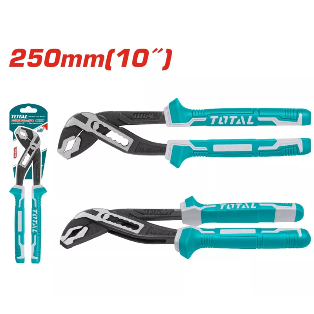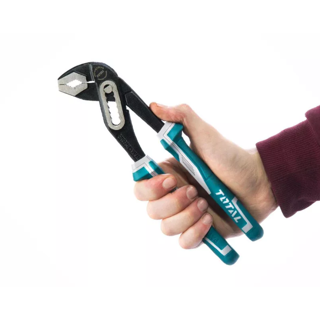 TOTAL THT281006 կարգավորվող տափակաբերան աքցանը օգտագործվում է ապամոնտաժման և վերանորոգման աշխատանքներում : Ի շնորհիվ կարգավորվող ծնոտների՝ տափակաբերան աքցանները կարող են հարմարեցվել դետալներին : Գործիքի աշխատանքային մասը պատրաստված է քրոմ վանադիումի պողպատից , ուստի այն ունակ է դիմակայել զգալի ծանրաբեռնման : Երկբաղադրիչ բռնակները բացառում են աքցանների սահումը ձեռքում ` ապահովելով հարմարավետ օգտագործում :