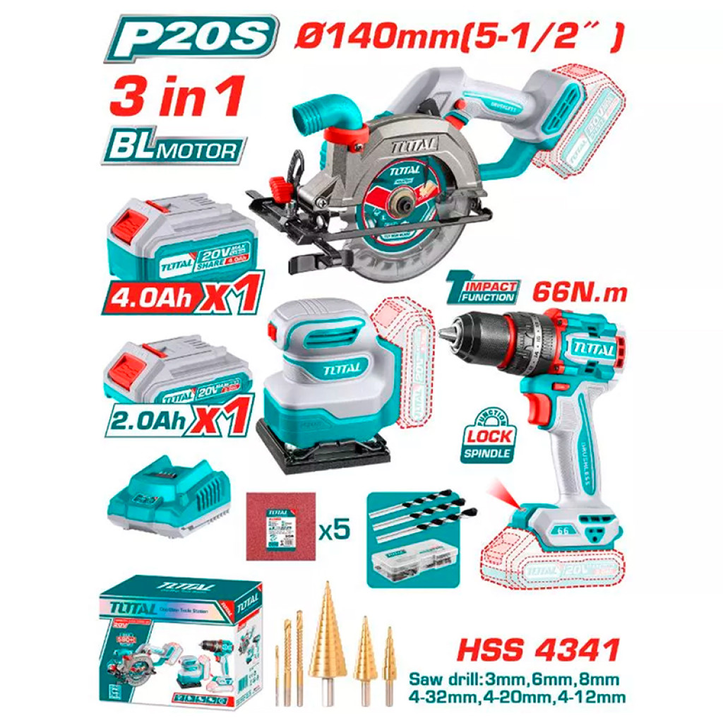 Մարտկոցային գործիքների հավաքածու (3 հատ) TOTAL TOSLI241193 (ԿՈԴ 14966)