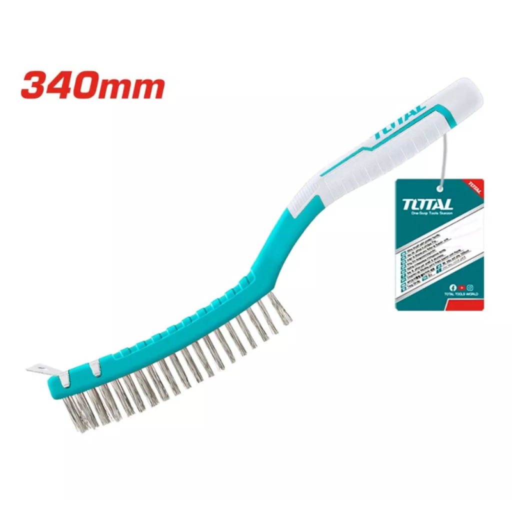 Ժանգից, պատերին մնացած հին ներկից, այլ աղտոտվածություններից մակերեսները մաքրելու համար պրակտիկ է TOTAL TAC38051 ձեռքի խոզանակը։ Այն ունի մետաղական մարմին և պողպատե մետաղալարեր, որոնք էլ ապահովում են մակերեսների մաքրությունը։ Մարմնին ամրացված է քերիչ։