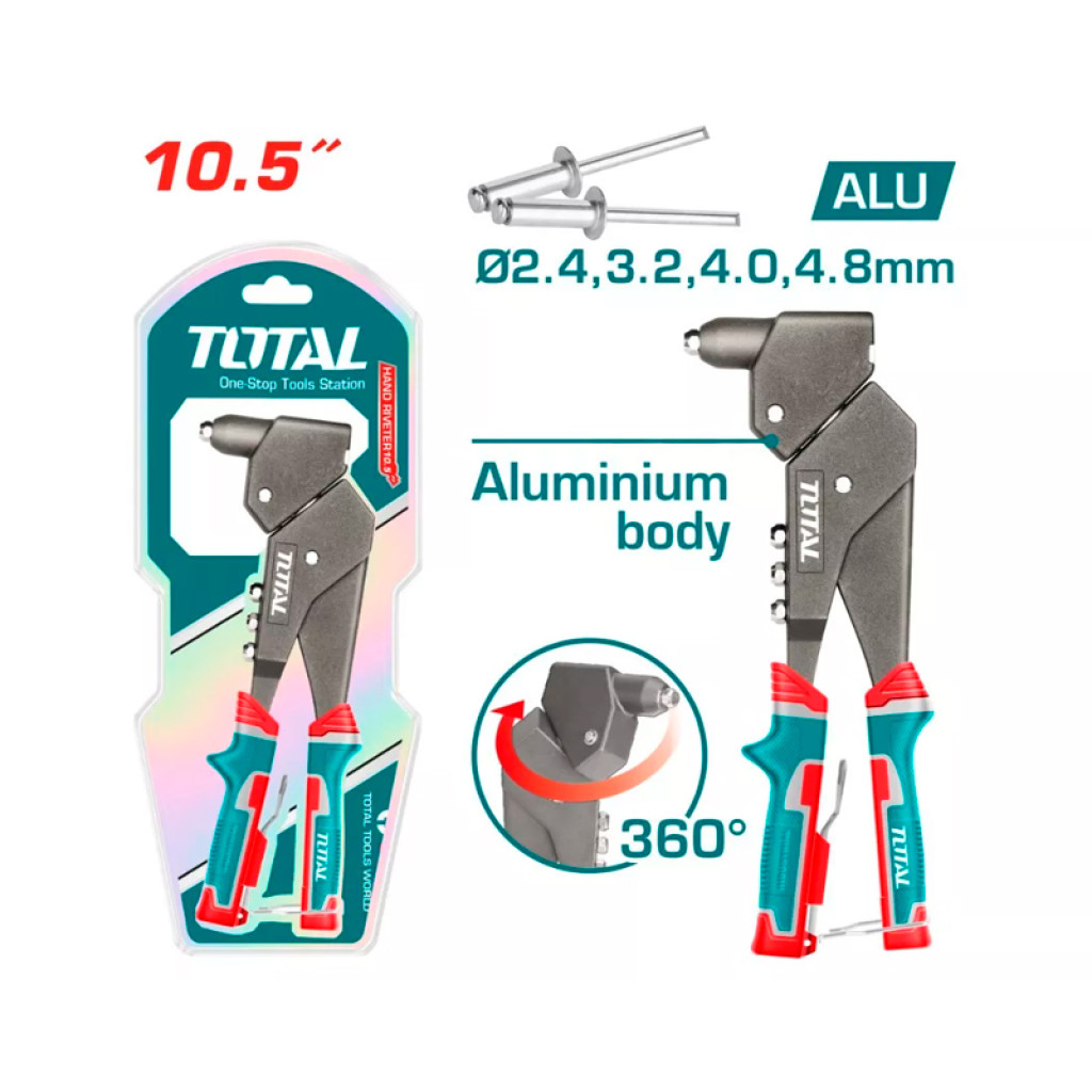 360° պտտվող գլխով ամրացման սարքը նախատեսված է 2․4 մմ, 3․2 մմ, 4 մմ և 4․8 մմ տրամագծով գամերը մակերեսներին ամրացնելու համար։ Պատրաստված է պողպատից և ալյումինից, ինչը ապահովում է գործիքի ամրությունը և թեթևությունը։ Պտտվող գլուխը հեշտացնում է հասանելիությունը դժվար հասանելի վայրերում համապատասխան աշխատանքներ կատարելիս։