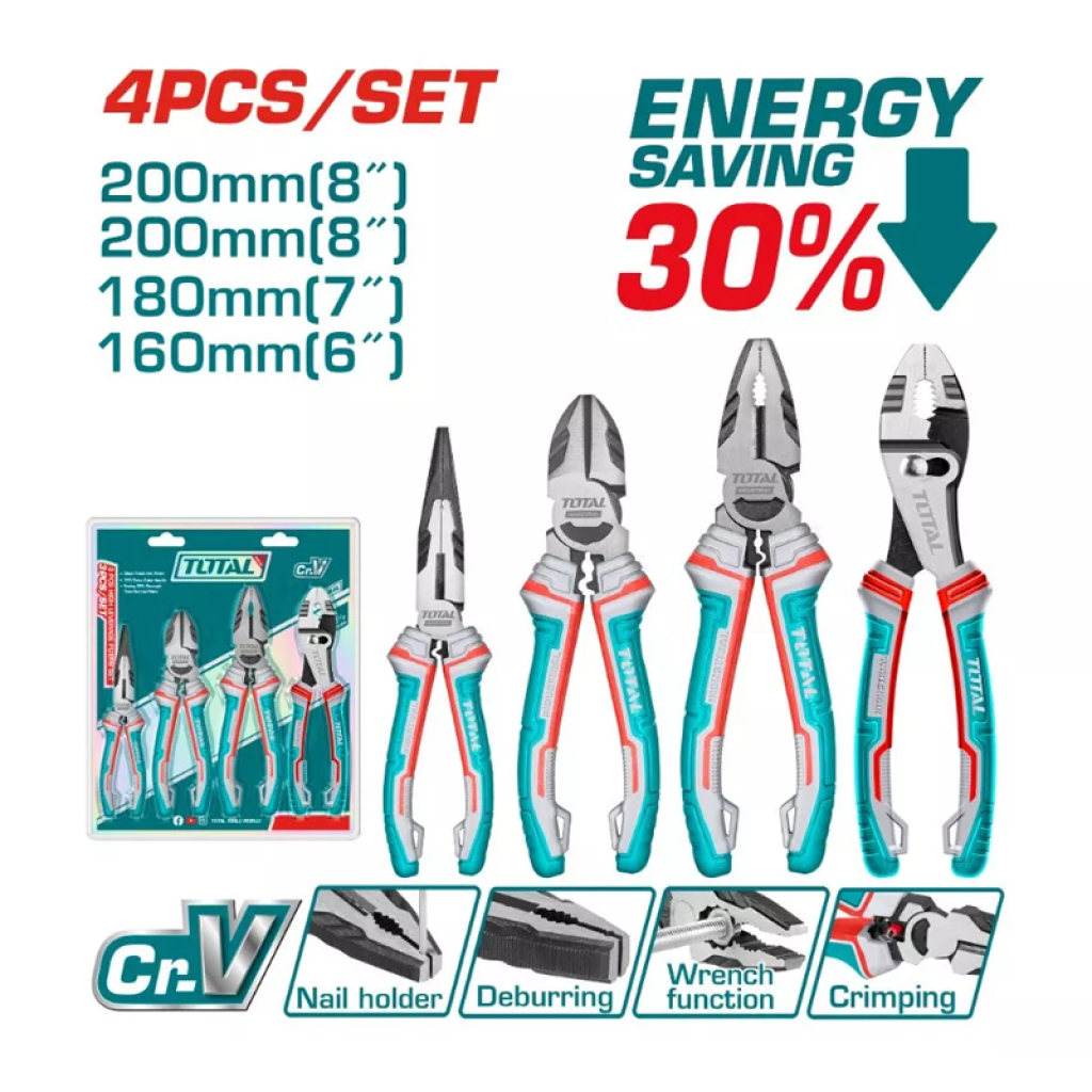 Հարթաշուրթ աքցանների հավաքածու 4 հատ TOTAL THT2K0458 (ԿՈԴ 14507)