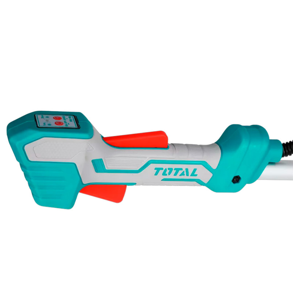 TOTAL - էլեկտրական խոտհնձիչը պարտեզի համար հուսալի և հարմարավետ գործիք է : Նրա էլեգանտ , հարթ և էրգոնոմ ձևը հնարավորություն է տալիս այն օգտագործել առավել դժվար հասանելի վայրերում : Ժամանակակից դիզայնը թույլ է տալիս ապահով կերպով պահել հարմարվողական սարքը ձեռքերում և կատարել աշխատանքը հեշտությամբ , արդյունավետ և առանց ջանքերի : Էլեկտրական խոտհնձիչի ուժը 40 Վ է , իսկ արագությունը ` 7500 պտ / ր