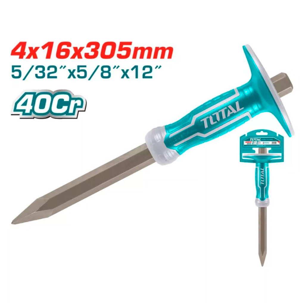 TOTAL THT4421216 պիկաձև հարվածային հատիչը օգտագործվում է այնպիսի նյութերի ապամոնտաժման և կտրման աշխատանքներում, ինչպիսիք են աղյուսը, կերամիկական սալիկը, քարը (արհեստական և բնական), բետոնը :