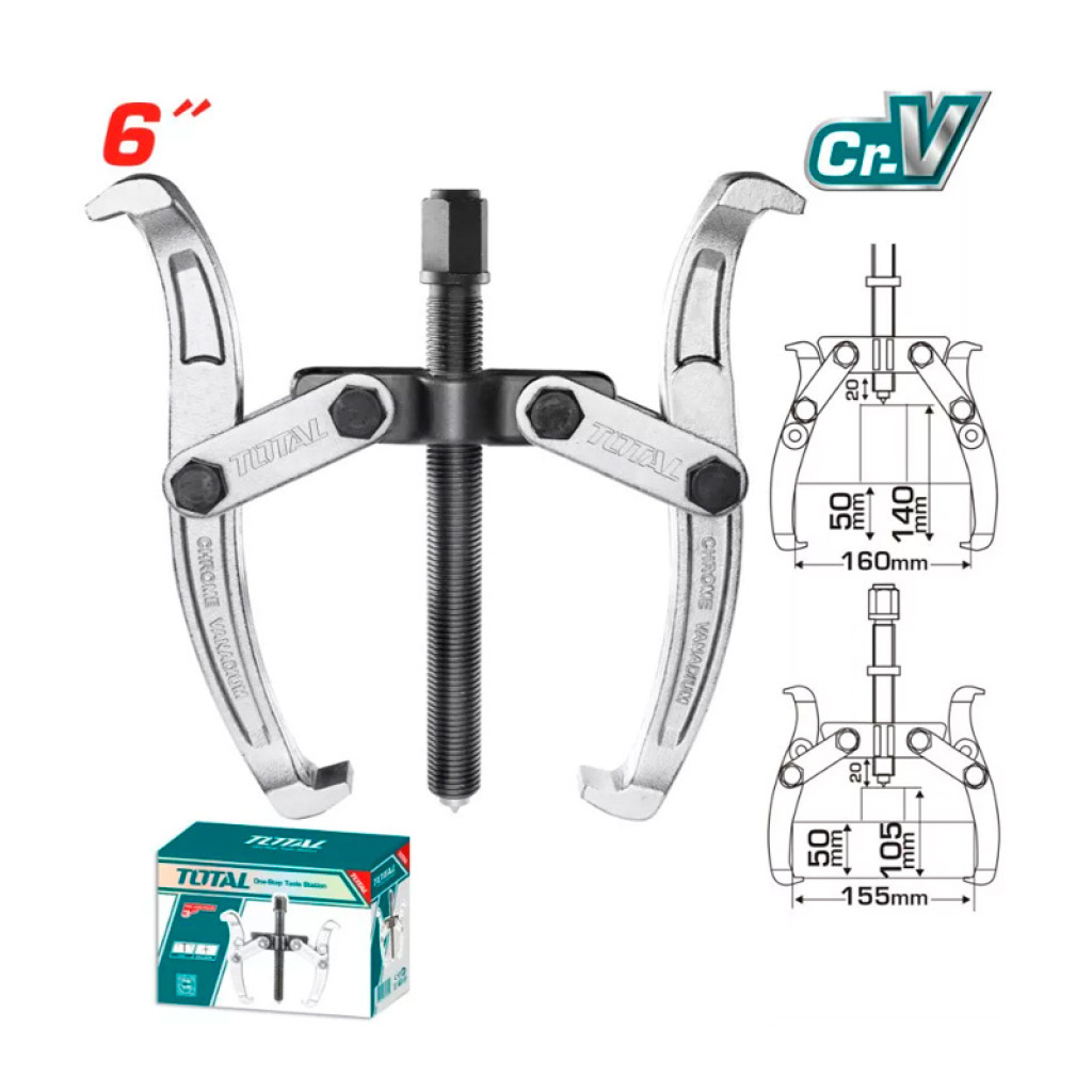 Առանցքակալի հանիչ քաշող TOTAL THTGP266- ը օգտագործվում է մասնագիտական ոլորտում աշխատանքների համար : Այն թույլ է տալիս արագ և հեշտությամբ հեռացնել ճախարակներն ու մեխանիզմները` չվնասելով դրանց կառուցվածքը : Կոմպակտ պատյանը թույլ է տալիս ապամոնտաժել գործողությունները շարժիչի վրա` տեղադրման վայրում :