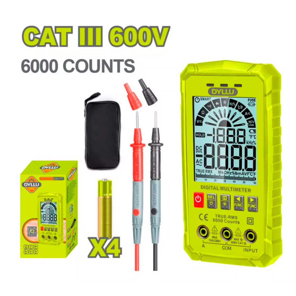 DYLLU DTDM1507 թվային մուլտիմետրը հագեցած է խելացի գործառույթներով, այդ թվում՝ լարման անհպում հայտնաբերում, ֆազերի թեստավորում, դիոդային թեստավորում, ջերմաստիճանի ճափում։ Սխալների դեպքում սարքը ցույց է տալիս խորհուրդներ։ Իրական միջին քառակուսային արժեքը հաշվվում է 2000։ Տվյալները պահպանվում են։ Էկրանը լուսավորվում է, ետևի մասում առկա է լապտեր։ Ներկառուցված է մարտկոցի ցածր լիցքավորման ցուցիչ։ Փաթեթում՝ 2 հատ LR03 AA մարտկոց։