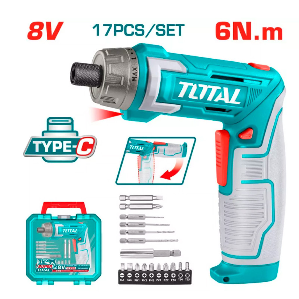 Պտուտակահան մարտկոցային 8Վ (12 բիթ, 4 գայլիկոն) TOTAL TSDLI08025 (ԿՈԴ 15778)