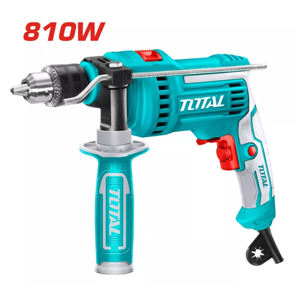 Էլեկտրական հարվածային գայլիկոնիչը հագեցած է 810 Վտ հզորությամբ շարժիչով: Պատրաստված է դասական դիզայնով և ունի ստանդարտ վերահսկողություն՝ հոսանքի կոճակ, հակառակ անջատիչ և արգելակող կոճակ: Բանալիով պատրոնը թույլ է տալիս հուսալիորեն սեղմել փորվածքը 1.5-ից մինչև 13 մմ հաստությամբ:Հարվածային գայլիկոնիչ 810Վտ TOTAL TG1081316 (ԿՈԴ 13970)