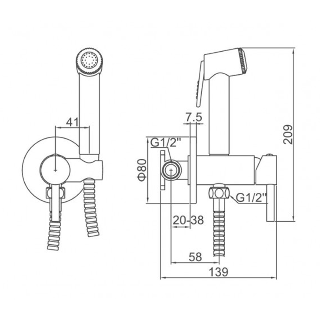 Ներկառուցվող խառնիչ հիգիենիկ ցնցուղով LEDEME RL5398D-2 Գրաֆիտ (ԿՈԴ 14545)
