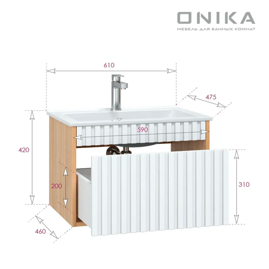 Լվացարան պահարանով կախովի Onika Дайлер 60, 610x475x420 մմ, (Խոնավակայուն) Սպիտակ (ԿՈԴ 12241)