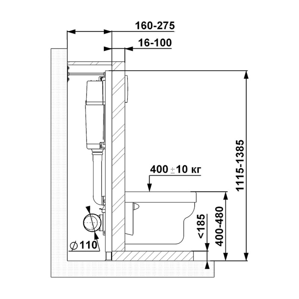 Ներկառուցվող մեխանիզմ Уклад СИ 01.04.54.00.0 կախովի զուգարանակոնքի համար (ԿՈԴ 9376)