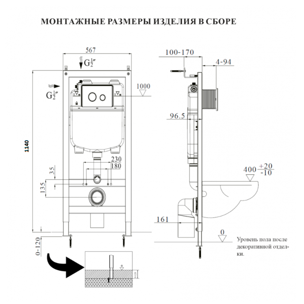 Տեղադրման տեսակ | Պատին, կախովի զուգարանի համար |