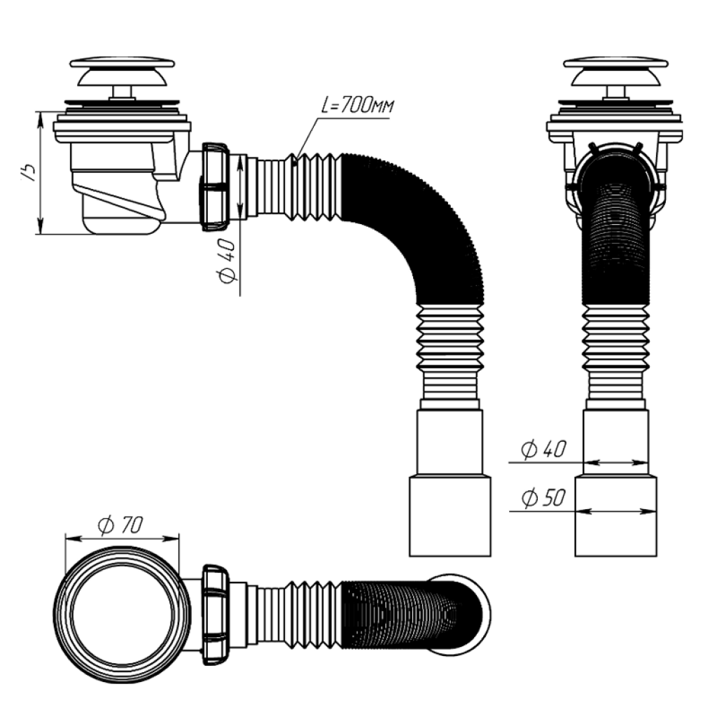 Սիֆոն լոգախցիկի համար Aquant V415-40-MR 1-1/2″(Ø40) Ø40xØ40/50մմ (ԿՈԴ 12391)