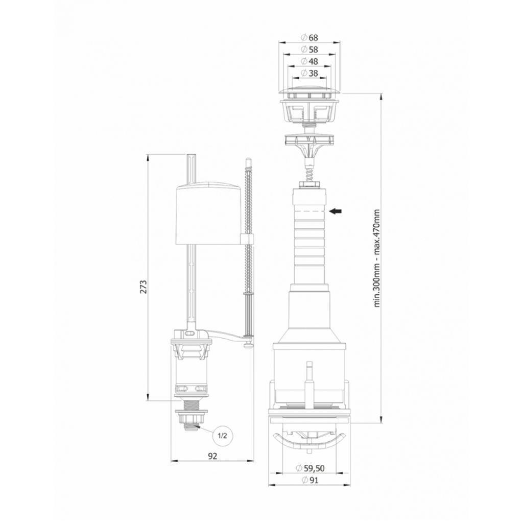 Զուգարանակոնքի մեխանիզմ և լողան MEGA 3004-I-NYL-1/2 (ԿՈԴ 12381)
