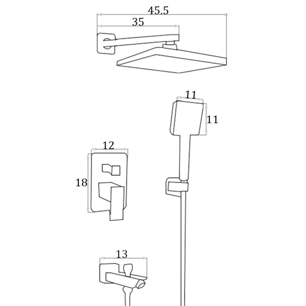 Ցնցուղի հավաքածու ներկառուցվող Dibia Martins (ԿՈԴ 7620)