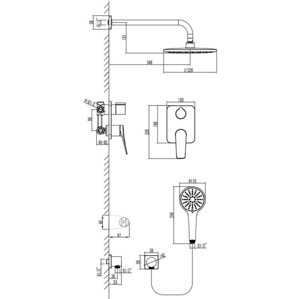 Ներկառուցվող ցնցուղի հավաքածու