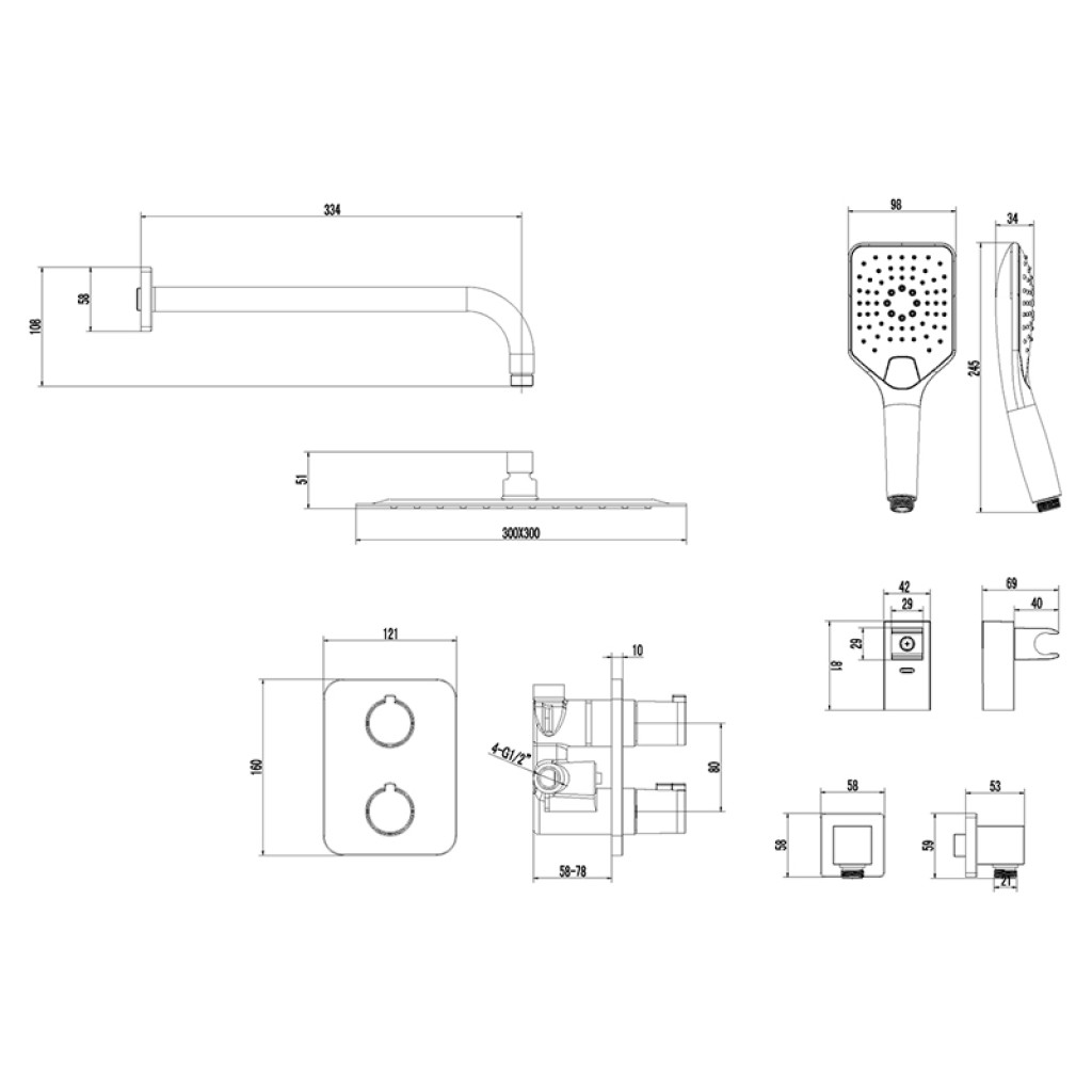 Ներկառուցվող Ցնցուղի հավաքածու, թերմոստատիկ խառնիչով