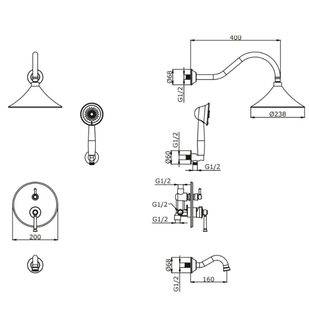 Ցնցուղի հավաքածու ներկառուցվող VIEIR V273563-D Անտիկ (ԿՈԴ 12061)