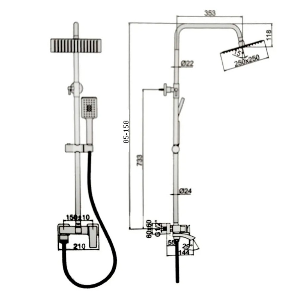 Ցնցուղի հավաքածու ACCOONA A83124F Սև (ԿՈԴ 7015)