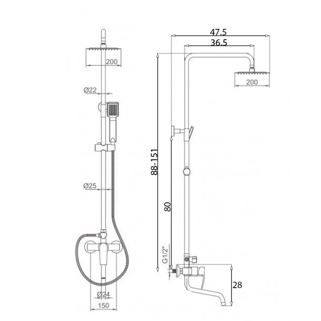 Մեծ ցնցուղի չափերը | 20x20 սմ |
