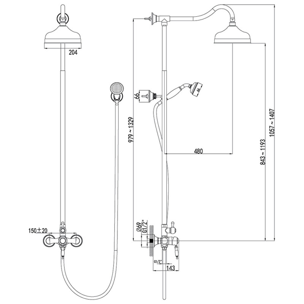 Ցնցուղի հավաքածու խառնիչով Lemark VILLA LM4860B Անտիկ (ԿՈԴ 9532)