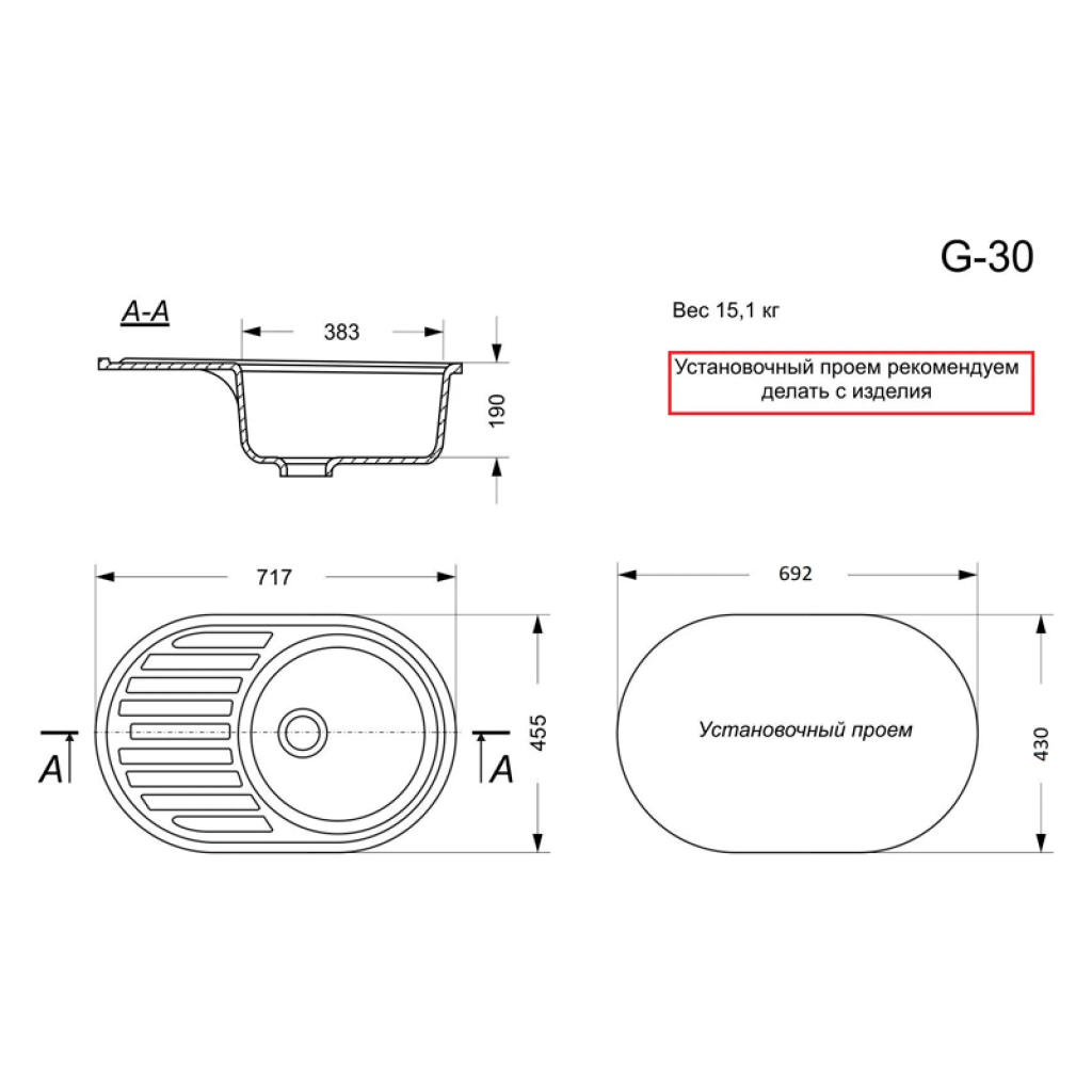 Խոհանոցի լվացարան GranAlliance G-30 Սև, 717х455х190 մմ Սև (ԿՈԴ 11262)