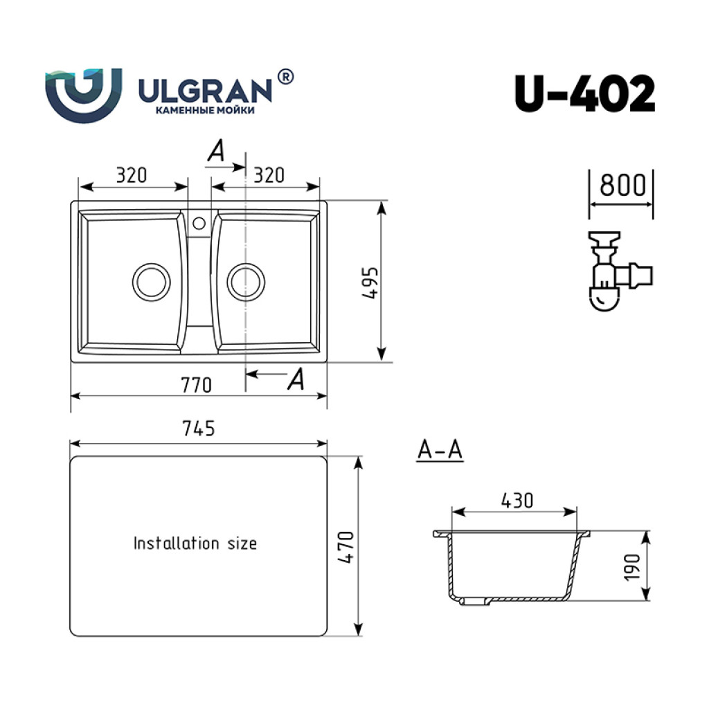 խոհանոցի լվացարան ULGRAN U-402-302 Ավազագույն, 770 х 495 մմ (ԿՈԴ 7119)
