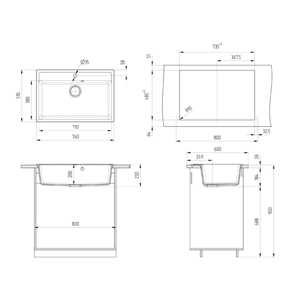 Խոհանոցի լվացարան ULGRAN U-600-302, 760х510 մմ Բեժ (ԿՈԴ 8690)