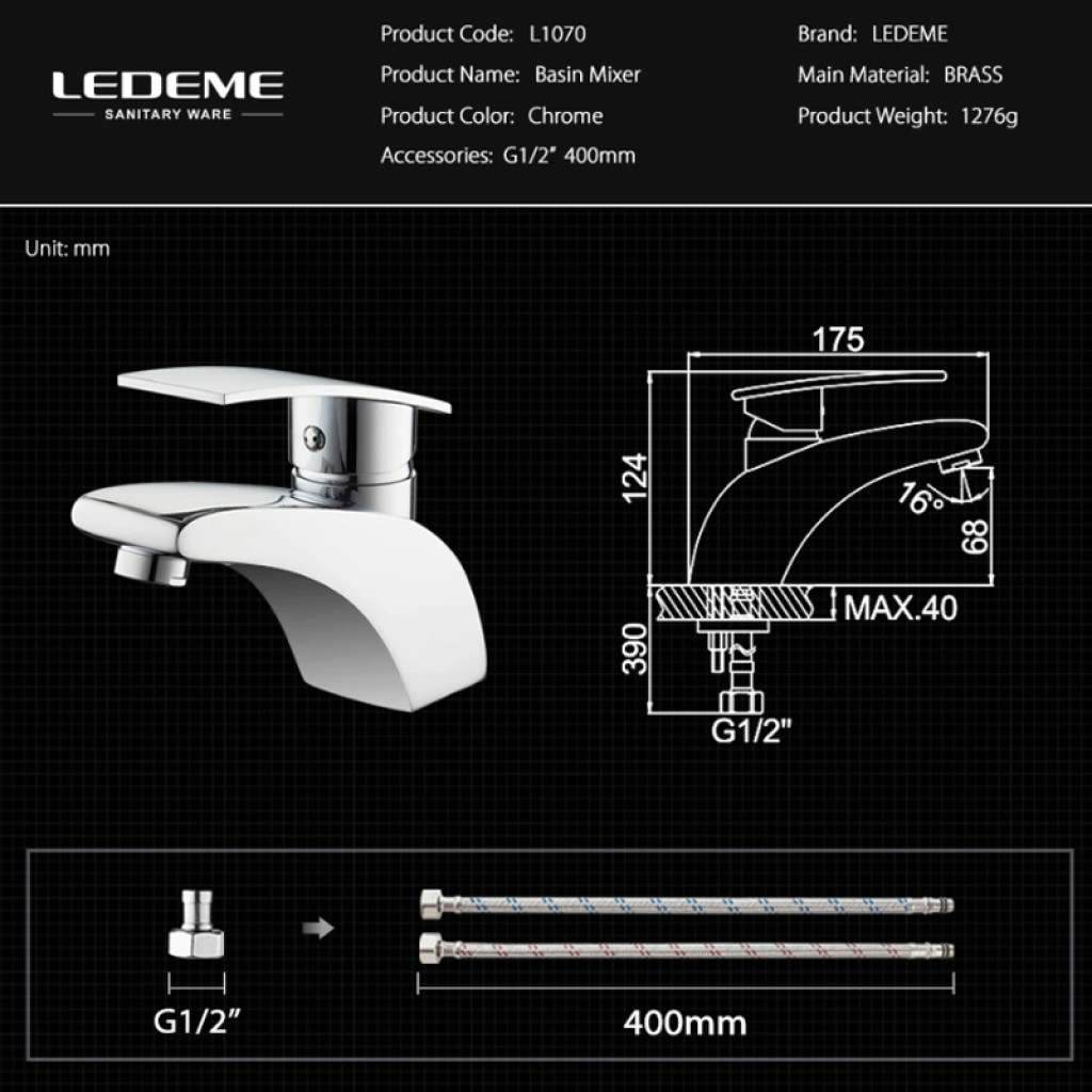 Լվացարանի ծորակ Ledeme 7L1070 (ԿՈԴ 8341)