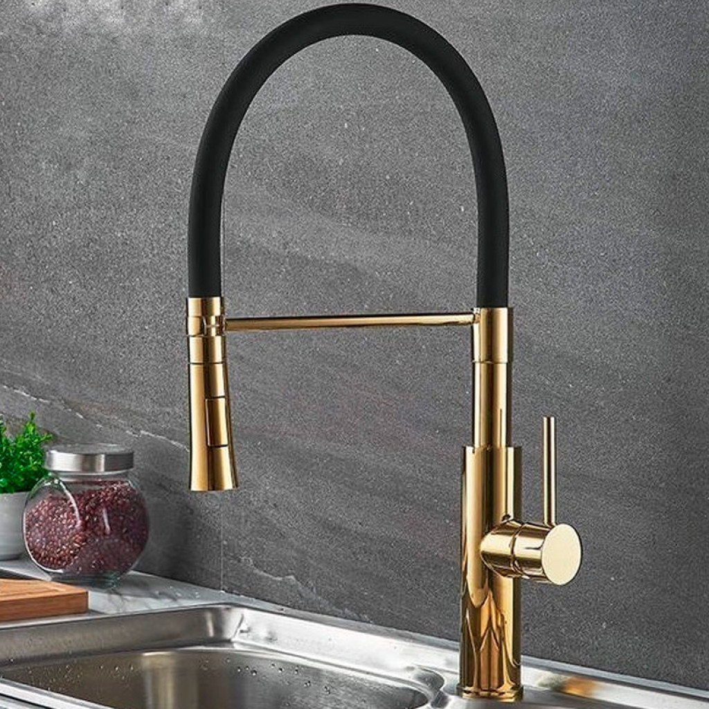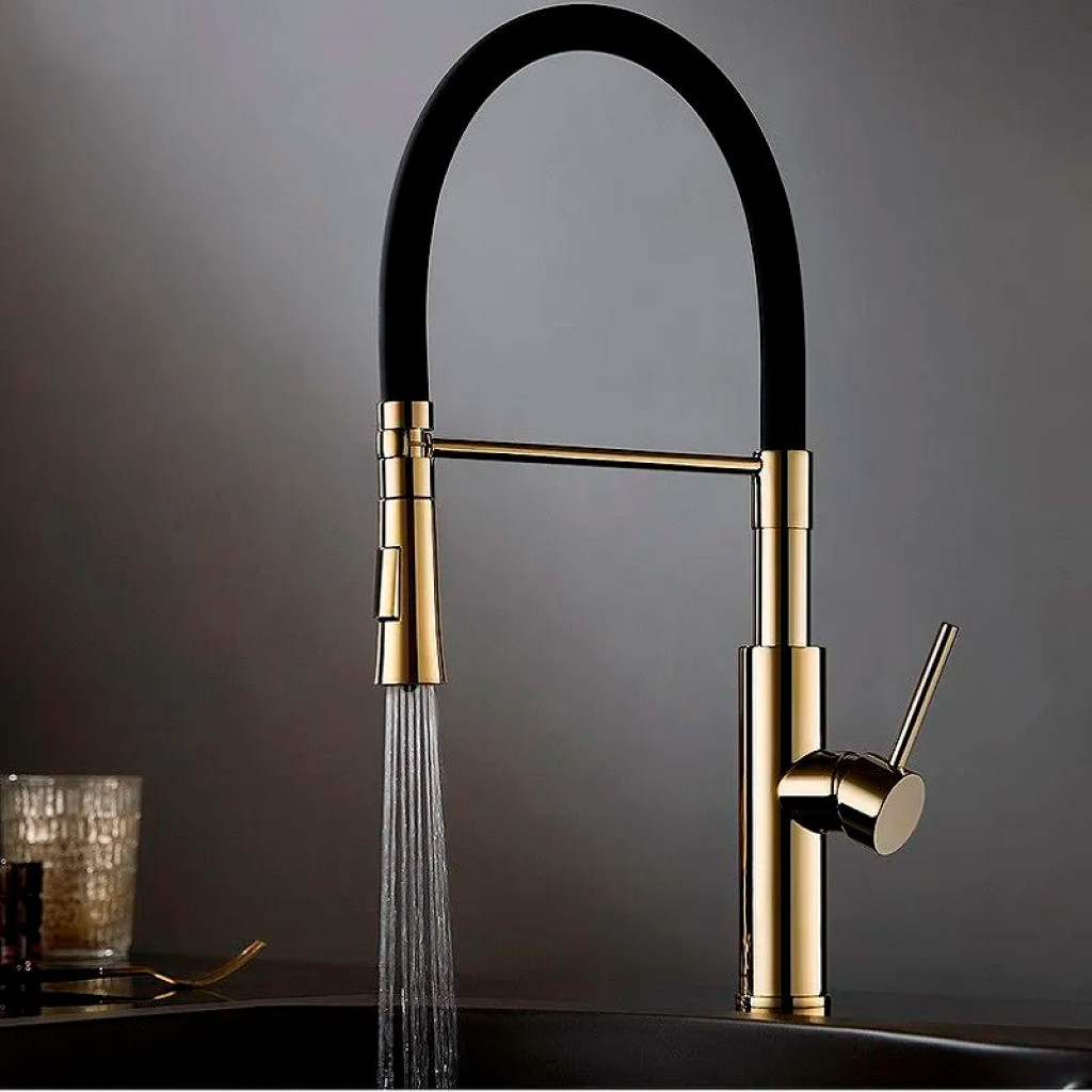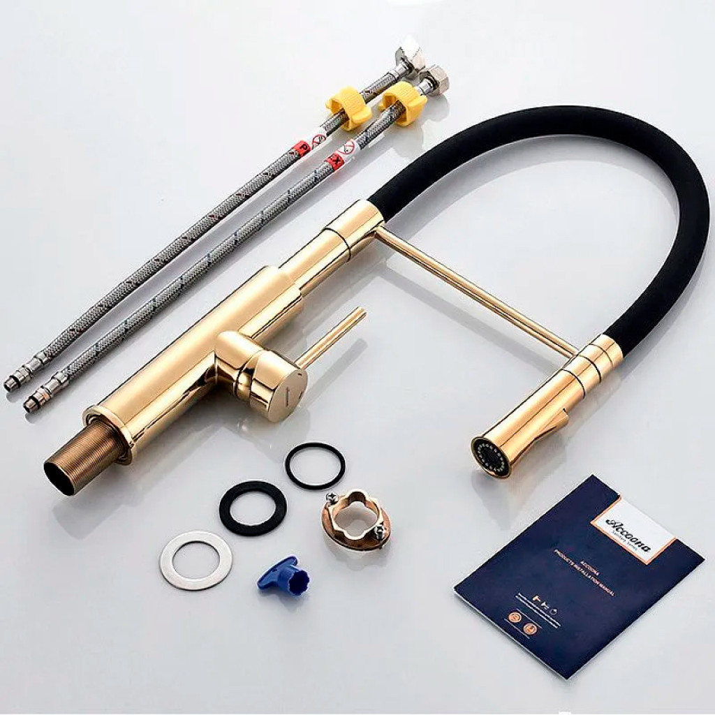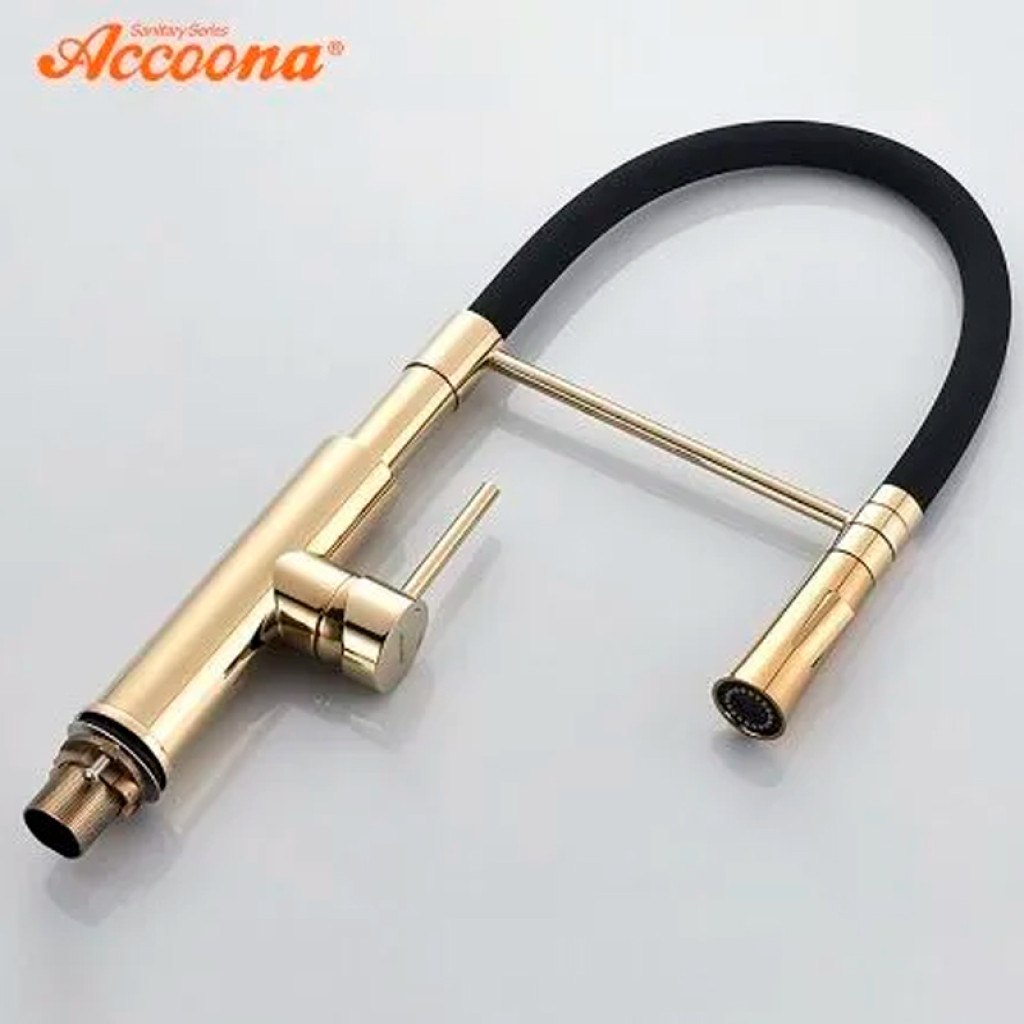 Խոհանոցի ծորակ, ճկվող Accoona A4890WF-1 Սև-փայլուն ոսկի (ԿՈԴ 11016)