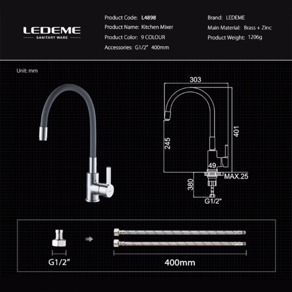 խոհանոցի ծորակ ճկվող LEDEME RL4898-9 Մոխրագույն-քրոմ (ԿՈԴ 7299)